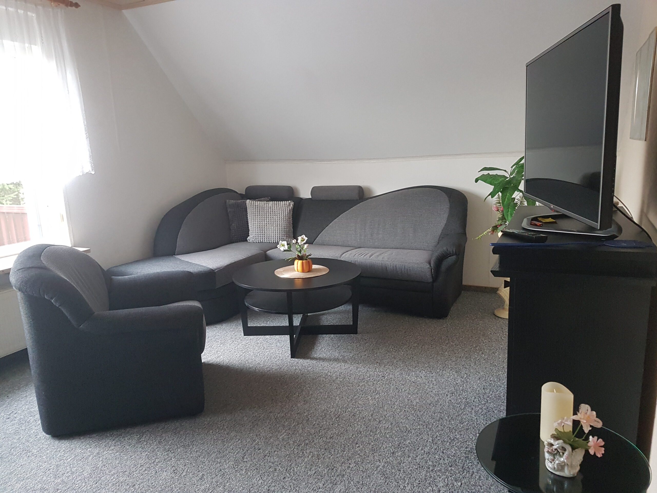 Unsere gepflegte Ferienwohnung (62qm) befindet sich in der 1. Etage. Sie verfügt über 2 Schlafräume, Wohnzimmer, Küche, Bad, einen Balkon und kostenfreies W-Lan. Eine Aufbettung ist möglich.